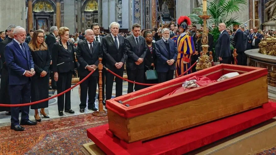 Presidente Luiz Inácio Lula da Silva e demais autoridades comparecem ao velório do papa Francisco na Basílica de São Pedro, no Vaticano (Foto: Ricardo Stuckert / PR).